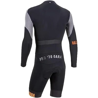 Windproof bodysuit with water repellent treatment adheres like a second skin while ensuring protection and lightness 3 rear pockets and Camlock invisible front zip Anatomical sleeve cut Leg bottom with silicone gripper elastic
