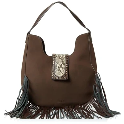 fringe shoulder bag Faux Suede Snakeskin look flap Detachable and adjustable shoulder strap Textile interior