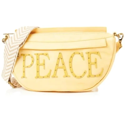 Trendy crossbody bag Peace letter on the front Zip pocket on the front Woven jacquard strap Textile inner lining