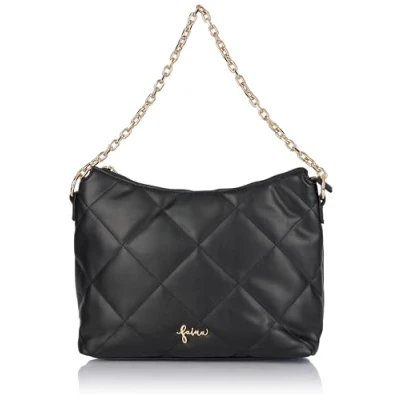 faux leather handbag Side drawstrings Long shoulder strap with chain detail Inner side made of textile