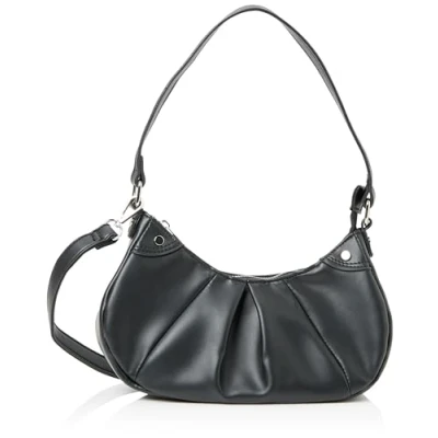 faux leather handbag Decorated with rivets Pleat detail Short shoulder strap Detachable and adjustable shoulder strap