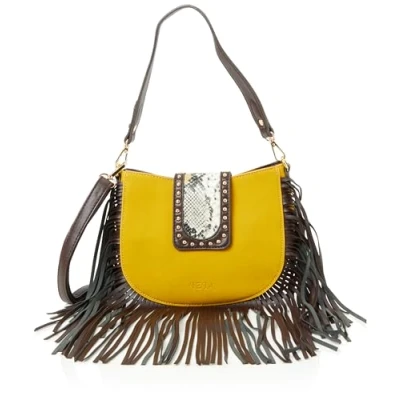 fringe shoulder bag Faux Suede Snakeskin look flap Detachable and adjustable shoulder strap Textile interior