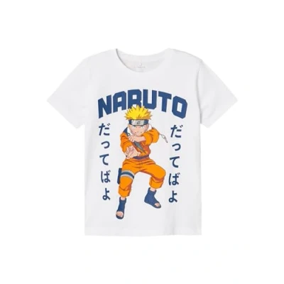 NAME IT Boy's NKMMACAR Naruto SS TOP NOOS Sky T Shirt, Bright White, 134 140 cm