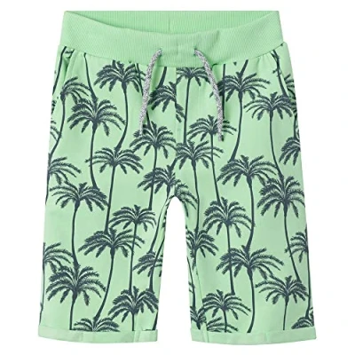 NAME IT Boy's Nkmvermo AOP Long SWE Shorts Unb F Noos, Green ash, 8 Years