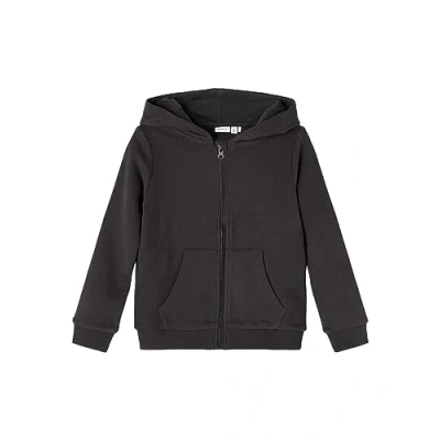NAME IT Girl's Nkflena Ls Sweat Card Wh Bru Noos Sweatshirt Jacket, Black, 6 Years