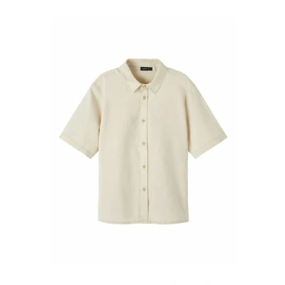 NAME IT Nlnhill Ss Linen Shirt Short Sleeved, Beige, 146 152 cm