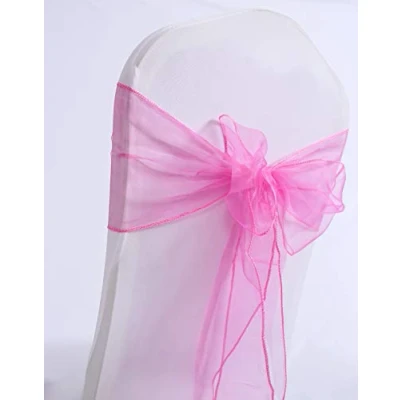 Namvo 10pcs Organza Chair Bows Pink, Fuller Wider Sash Sashes Ribbon for Wedding Party Events Birthday Decoration, Not Included The White Cover