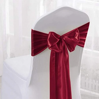 Namvo 25PCS Bow Elastic Satin Chair Bowknot Sashes Back Decoration for Wedding, Party, Home(Wine Red)