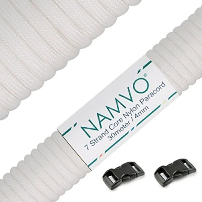 NAMVO 550 Luminous Glow in the Dark Paracord Mil Spec Type III 7 strand parachute cord White 100ft / 30 Meters