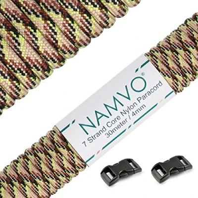 Namvo 550 Paracord Mil Spec Type III 7 strand parachute cord Total Length 100ft / 30 Meters, Camo, Green + Brown Black