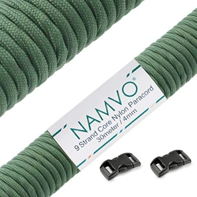 Namvo 550 Paracord Mil Spec Type III 9 Inner Strands Nylon Parachute Cord Strong Breaking Strength 100 Feet Green