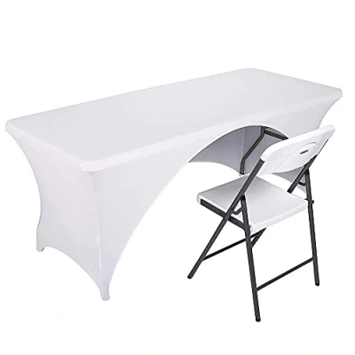 HIGH QUALITY TABLE CLOTH: Stretch tablecloth is made of high quality 90% Polyester material and 10% Spandex fabric, durable and reusable. SIZE: The spandex tablecloth measures 183Lx75Wx75H CM, fits most rectangular patio tablecloths. PRACTICAL DESIGN: Reinforced sewn-in leg pockets hold the tablecloth in place, creating a tight and professional look. The leg pockets can be used to secure the stretch tablecloth to the table legs. So please don't worry about the wind blowing away your tablecloth. EASY TO CLEAN: Machine wash cold or hand wash; Hang to dry; Cannot be bleached; Wash with clothes of the same colour; Iron on a low temperature if you want to make it flatter. VERSATILITY: Perfect for events, festivals, weddings, conferences, parties, celebrations, banquets or any special events. Our tablecloths can be used for cocktail tables, dessert tables, display tables, buffet tables, DJ tables and more.