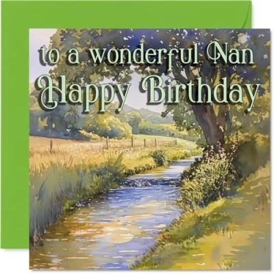 Nan Birthday Card Outdoor Watercolor River Happy for from Grandson Granddaughter, 145mm Pond Bday Greeting Cards