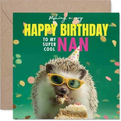 Nan Birthday Card Spike tacular Cake Happy for from Grandson Granddaughter, 145mm funny hedgehog Bday Greeting Cards