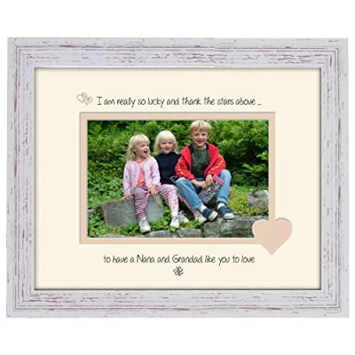 Photos in a Word Nana and Grandad Photo Frame Thank the Stars Above Double Mounted Quality Gift 811F (Shabby Chic Frame Cream Mount Beige Inside)