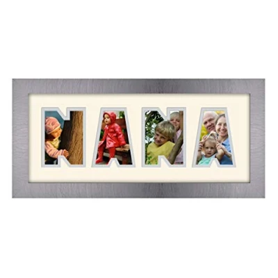 VISIT OUR STORE please read all of the next few lines, just click on sold by ” Photos in a word “ on the right below Buy Now Button ,this opens a new page , on top left click on the words “ Photos in a word storefront” this opens the shop page, then to search any title add words “photo frame ” after the title in the stores search bar . To have any name or word between 3-7 letters just search the word “personalised “ in the store search bar, click on personalised one and choose letter amount. To get NANA in a different frame or for any custom name 3 to 7 letters, copy and paste this code into the Amazon search B07JWJ3D7V **COMBINED POSTAGE** on items ordered together to the same address. We combine postage in the Shopping basket , Orders placed before 3pm are dispatched the same day Mon-Fri and weekend sales on Monday by Royal Mail First Class post Ready to wall hang also comes with stand, overall size of frame outside approx 16.5” x 8” Inches (42.5cm x 20cm) Depth 16mm, inside frame (mount size) 37.5cm x 15.1cm. Works well with 6"x4" photos, also facebook, instagram and other digital pics. Height for photos set approx 100mm, comes with instruction sheet showing best way to fit photos.Quality item designed and made exclusively by Photos in a word in the UK.