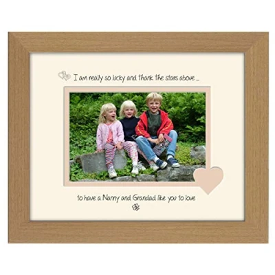 Nanny and Grandad Photo Frame Thank the Stars Above Personalised Double Mounted Quality Gift (Textured Oak Finish Cream Mount Beige Inside)