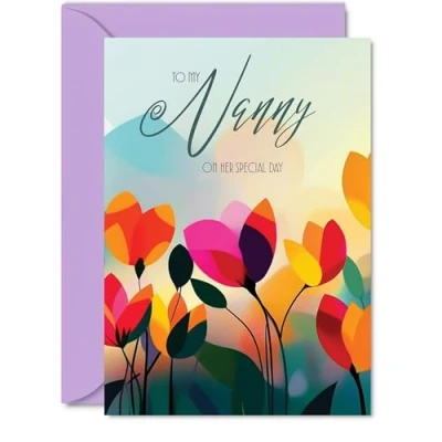 Dazzle your Nanny with joy using our exquisite Happy Birthday Card Nanny; a premium quality masterpiece that features a captivating design saying 'To My Nanny On Her Special Day'. The vibrant colours on this card make it stand out, ensuring it's not just a card but a beautiful keepsake. It's a Personal Gift that shows your Nanny how much you care and the perfect way to express your love and appreciation on her special day. What's Inside: Delve into a world of elegance with the inside print showcasing a lovely verse, 'May you have a fantastic day filled with joy, laughter and all the things...' as seen in the second image. There's ample space for your personal message. Crafted on a 360-micron thick environmentally responsible board, this one-sided gloss board offers a luxurious look and feel. Paired with a colored gummed envelope that complements the design, making it a truly special birthday gesture. Ink Perfection: Say goodbye to ink smudges! Our high-quality one-sided coated board ensures a smooth writing experience without the worry of smudging. The uncoated side absorbs ink, providing a flawless finish that adds to the card's overall premium quality. Nanny birthday cards, ladies birthday card, womens birthday card, Female birthday cards. Dimensions that Impress: Greet with grandeur using a card sized at 127mm x 178mm, accompanied by an envelope measuring 130mm x 180mm. The card boasts a thickness of 360 microns, ensuring a substantial and impressive presence. Nanny birthday card, happy birthday Nanny card, birthday card Female, summer birthday cards for women, birthday card flowers. British Craftsmanship: Proudly crafted and quality-checked in the UK, our birthday cards are a testament to expert design and manufacturing. Utilizing Forest Stewardship Council certified board, we contribute to responsible forest management. Expect a swift turnaround and a product that reflects the highest standards of quality. Nanny birthday cards, Female birthday cards adult, floral birthday card.