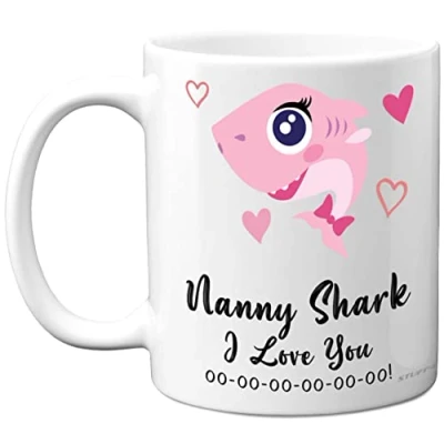 MAKE NANNY SMILE ON HER SPECIAL DAY: If you are looking for special Nanny gifts from Grandchildren for her then look no further. This exceptional quality mug bears the design "Nanny Shark I Love You oo-oo-oo"- It's bound to make them smile. Not just for a birthday Nanny gifts from Grandson or Granddaughter, this could also be a birthday gift for Nanny, Nan, Nanna, Nannie, Grandma, or Nana. WHAT DO YOU GET: This funny but cute Nanny christmas presents is made from the highest quality mugs available on the market. An 11oz ceramic gloss finished mug with a large handle for ease of use. The cheeky design is printed on both sides so no one will miss it. Incredibly funny gifts for women and men from Stuff4 Ltd. Birthday gift for Nanny. PACKED FOR PROTECTION: Every order is packed in a drop proof double walled cardboard Mug Mailer which are lightweight and strong enough to provide total protection. So have the birthday boy or girl in pieces and not the rude mugs. Nan birthday gifts from granddaughter, birthday gifts for Nanny, Nan birthday gift. MADE AND QUALITY CHECKED IN THE UK: We manufacture all our product right her in the UK so you can be sure of a fast turnaround and a product that is expertly made - for her birthday gifts and his. Great Nanny banter Mothers day gifts from Granddaughter or Grandson. First Mothers Day gift Daughter, Nanna birthday gifts, birthday gift Nanny, Nana banter gift, 1st Mothers Day gift, happy birthday Nanny gift. 11oz DISHWASHER AND MICROWAVE SAFE MUGS: Made from premium ceramic our 11oz heavyweight mugs are manufactured with a dishwasher safe premium coating. This means that the colours of your image will not fade from even after multiple cycles (up to 800) through a dishwasher. They are also microwave safe. Mothers Day gifts from grandkids, Mothers Day funny gift, Nan birthday gifts from granddaughter, Valentines gift.