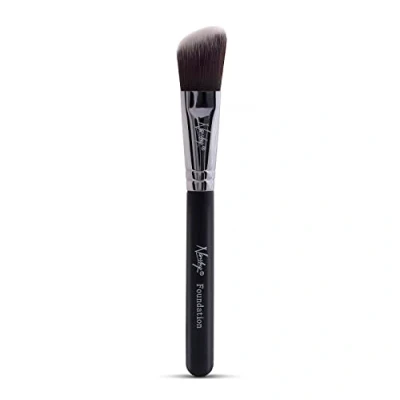 Nanshy Flat Foundation Brush Precise Angled Make up Slanted Bronzer, Blusher, Liquid and Concealer (Black/Chrome, Full Size)