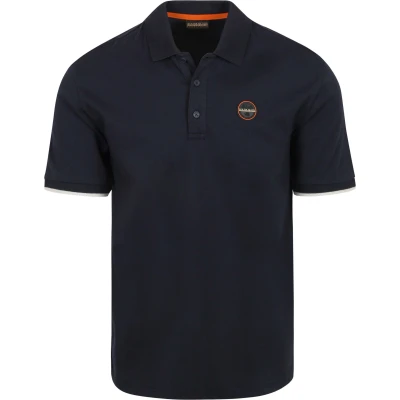 Napapijri E-Badge Polo Shirt Navy Napapijri E-Badge Polo Shirt Navy in the color Blue and Dark Blue with a fit Modern-Fit is made from Cotton with a Brand logo and Plain design and Short sleeves.