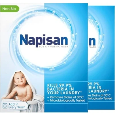Napisan Non Bio Stain Remover Powder, 800g, Pack of 2, Kills 99.9% Bacteria in Your Laundry for a More Hygienic Wash, Disinfectant & Even at 30C, 52 Washes