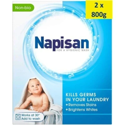 Napisan Non Biological Germicidal Stain Remover Powder, 800g, Pack of 2 Kills 99.9% Bacteria in Your Laundry for a More Hygienic Wash, Disinfectant & Even at 30C, 52 Washes