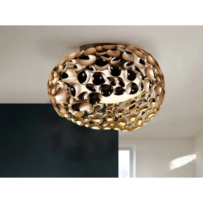 Net LightingCeiling lamp of 5 lights made of metal with rose gold plating and dark brown paint. Inner acrylic diffuser.