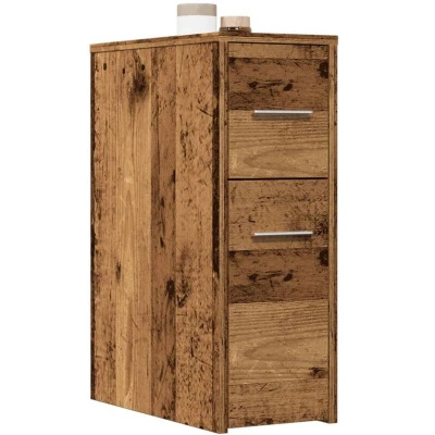 ManoManoGeneral description This classic narrow bathroom cupboard is a decorative and practical addition to your home. It provides ample storage space to keep your daily essentials well organized and protects your items from dust and dirt. The cupboard features quality metal runners and elegant handles for smooth movement, making it easy to access your stored items. With two wheels, it can be easily relocated to suit your needs. Technical specifications Colour: Old wood Material: Engineered wood Overall dimensions: 22 x 44 x 61.5 cm (W x D x H) Drawer dimensions: 18 x 38.5 x 21/38 cm (W x D x H) Loading capacity of top shelf: 50 kg Loading capacity per drawer: 5 kg Overall loading capacity: 75 kg Assembly required: Yes Installation To prevent tipping, this product must be used with the provided wall attachment device. Screw(s) and plug(s) for inside the wall are not included; use suitable ones for your walls. If uncertain, seek professional advice. Read and follow each step of the instruction