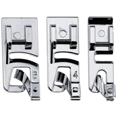 6mm, 4mm and 3mm rolled hem presser foot, Roll fabric edge and hem stitch at the same time. sewing machine feet Material: Stainless Steel, long-lasting and durable, bright color and not easy to rust. sewing machine foot Easy to snap on and with high performance. Roll fabric edge and hem stitch at the same time. Sewing with this foot is not difficult but it may need a bit of practice; It is suitable for some thin fabrics, which can be better to roll up some beautiful patterns Fits All Low Shank Snap-On Singer* (Some Singers Require Low Shank Adaptor), Bernina,Brother,Babylock,Dial,Domestic,Dressmaker,Euro-Pro,Eversewn,Elna,Janome,Kenmore,White,Juki,New Home,Simplicity, Necchi,Riccar,Viking Sewing Machines.