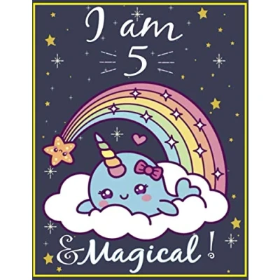 Narwhal Journal I am 5 & Magical!: Coloring book and sketchbook Happy Birthday Years Old Notebook for Kids, Girls / Year Gift Girls!