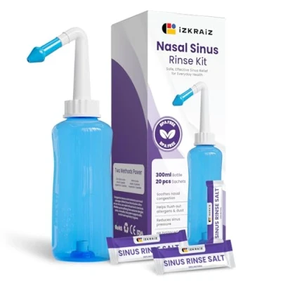 Nasal Rinse Kit 300ml Bottle + 20 Saline Packets Neti Pot for Sinus Relief & Hygiene PH Balanced