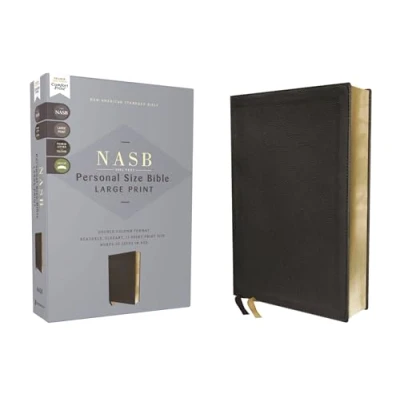 Nasb, Personal Size Bible, Large Print, Genuine Leather, Calfskin, Black, Red Letter,...