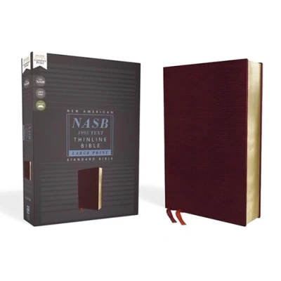 NASB, Thinline Bible, Large Print, Bonded Leather, Burgundy, Red Letter, 1995 Text,...