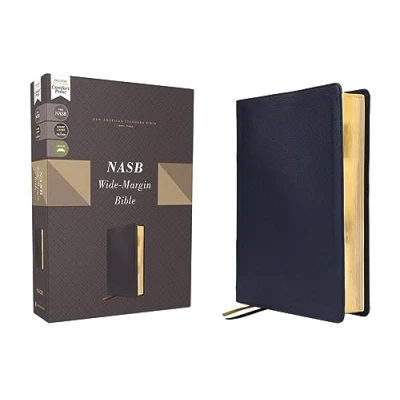 NASB, Wide Margin Bible, Genuine Leather, Calfskin, Navy, Red Letter, 1995 Text, Comfort Print: New American Standard ... Margin, Print