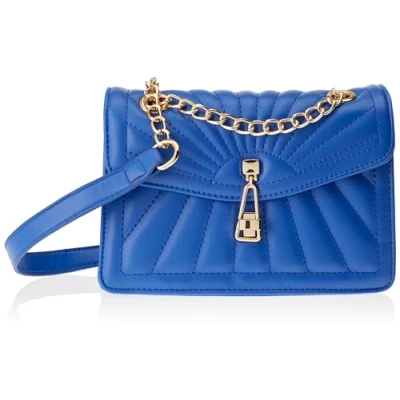 Faux leather shoulder bag Radiant quilting Gold hardware Textile inner lining Interior side zip pocket