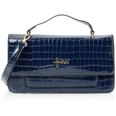 elegate handbag Adjustable and removable strap Handle Gold-coloured lettering on the flap Interior zip pocket