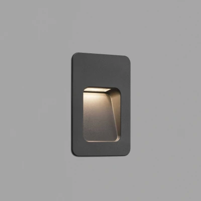 The range offers fittings which are ideal for mounting down a set of steps, or along a pathway. The fittings offer additional visibility, transforming the area into a safe night-time environment. offers two different sizes, each of which is available in white and dark grey finishes. The LED fittings consume minimal energy. Class two. Driver included. The fitting includes a recess mounting box.