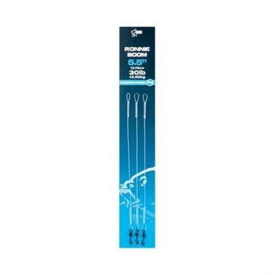 Nash Fluoro Ronnie Rig Boom - Fluorocarbon Ronnie Rig - Available in multiple lengths - Extremely strong and stiff anti-tangle - Number: 3 per pack - Optimal hooking on every type of bottom - Equipped with Ronnie Swivel - Make it possible to quickly change hooks! Extremely strong, rigid anti-tangle Fluorocarbon booms for the perfect Ronnie rigs that push the hookbait away from the lead for optimal hooking on any bottom type. A Ronnie Swivel allows for quick hook changes without tying or steaming by using the Tungsten Kickers or shrink tubing.