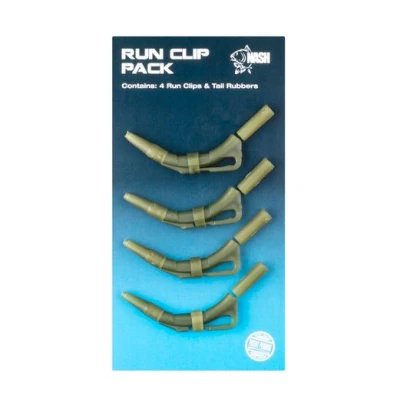 Nash Run Lead Clip Pack - Available in camou green and dark silt - Number: 4 per pack - Features Uni Swivels (size 8) - Perfect for zig fishing and running rigs - Run Clip grips the line under tension - Slack line slides freely through - Improved bite indication - Kit includes 4 Run Clips, 4 webbing straps, 4 anti-tangle tail rubbers Nash Run Clips are the ultimate solution for zig fishing and running rigs. The uniquely curved Run Clip grabs onto the line under tension, but a slack line, on the other hand, slides freely through it, allowing you to easily adjust your zig up or down. Bite indication is also improved because when a carp is hooked, the Run Clip will engage. This allows the lead of a sliding mount to be released for the first time ever, which is much safer near plants and obstacles. Each kit includes 4 Run Clips, tension straps to control lead release, anti-tangle tail rubbers and beads to grip nicely on Uni Swivels (size 8) and Zig Floats. Run Clips are available in weed green and dark silt.