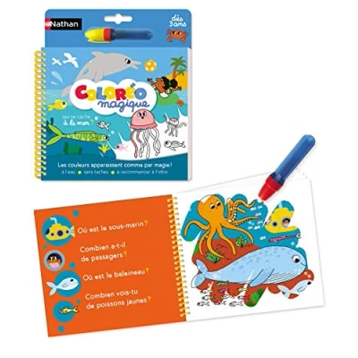 A first booklet of magic coloring with water to start over again from the age of 3. Colouring without the risk of staining the whole house! The child colors with the water pen to make the colors appear When the drawing is dry, then the colours disappear and it can start over again and again as many times as he wishes A booklet that is easy to take anywhere and a suitable, ergonomic pen for easy gripping by small hands The little extra: the pages are also educational and children will be able to learn a lot of things about the theme of the booklet. Here the sea, Manufacturer: Diset