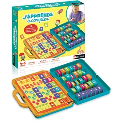 From 4 years, children can familiarize themselves with the numbers and make fun of operations: additions, subtractions and multiplications Evolutionarily, the child begins with simple numbers and then develops his skills and ends with the multiplications. A total of 15 progressive boards Clever. The left surface can be used to do free operations, Manufacturer: NATHAN