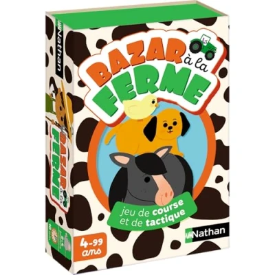 This is the bazaar on the farm! The animals of the farm organise an acrosport competition. Let the chick climb over horse, pig and cow. If your animal pyramid is the highest, you will be declared the winner! A racing and tactics game, with special cards hidden in the game that allow the height of your pyramid forward or slow down. A strategic part, because behind the card stack wheelbarrow, the animals are smaller, but there are more advantageous special cards. In contrast, the tractor stack allows its pyramid to climb faster but with more risks. Perfect for seeing if the child prefers to take risks or secure. An original gameplay thanks to the fairies Hilares who invented the game to allow enjoyable, fun and with a touch of strategy Beautiful illustrations on the theme of farm, on which the little ones can recognise and name their favourite animals Easy to understand rules, a quick set up game and short games, everything is together to spend beautiful moments with the family, Manufacturer: Jumbo group