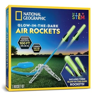 NATIONAL GEOGRAPHIC Air Rocket Launcher Toy Launch Glow in the Dark Rockets up to 30 Meters, Outdoor Toys, Toys for Kids 8 12
