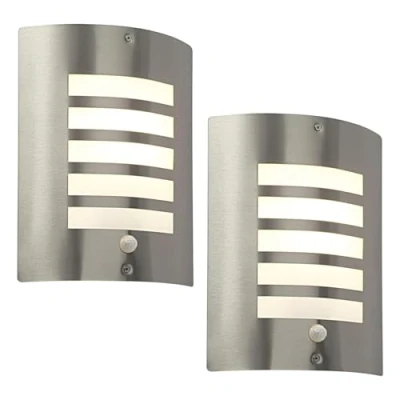 STYLISH OUTDOOR WALL LIGHT - Add a touch of elegance to your porch and pathways at home. Equipped with a PIR sensor, Bianco is ideal to use as security lights. Its attractive design also makes it a lovely front door light. DUST & MOISTURE RESISTANT EXTERNAL WALL LIGHT - With its IP44 rating, it's suitable for outdoor installation such as lighting pathways, driveways and garden steps. Create a dreamy setting for your outside space with this luminaire. FUNCTIONAL & STUNNING OUTDOOR LIGHT WITH PIR SENSOR - Made with brushed stainless steel and polycarbonate, this wall mounted light is weatherproof and built to last. Excellent for outside lighting applications ADJUSTABLE OUTDOOR PIR LIGHT - Bianco's curved PIR External Lights feature a 100 degree detection angle, 8m maximum range, with a 6 sec - 5 min timer function. Range and timer can be adjusted using screws located under the grey cover. GREAT-LOOKING PATIO LIGHTS - Made for 60W 240V GLS ES or LED E27 (not included) lamp type, the Bianco outdoor sensor lights will look great on the wall of your modern home. It's high-quality and has a 2-year guarantee.