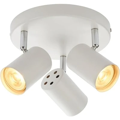 Compatible with LED lamps. The spots are fully adjustable allowing light concentration where it's needed. 350 degree rotation and 90 degree tilt Made from metal. Use with energy compatible lamps for lower maintenance costs. For indoor use Comes with fixing accessories. Dimmable with suitable lamps. 2 year guarantee for peace of mind Lamp Type: 3 x 7W 240V LED GU10 (Not Included) Dimensions: 145mm Projection x 240mm Diameter