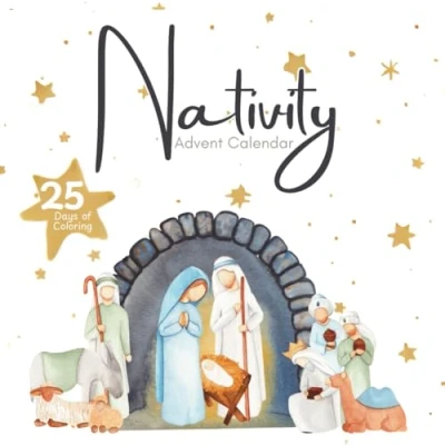 Nativity Advent Calendar Coloring Book: for Kids, Teens and Adults 25 numbered single sided Christ centered themed pages, Countdown to Christmas all ages