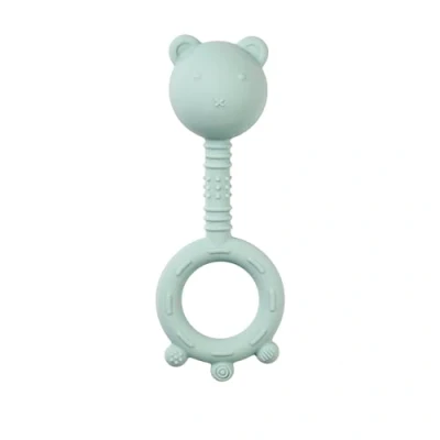 Nattou Silicone Rattle, Teddy Bear, Approx. 16 cm, BPA Free, Silicone, Pastel Green