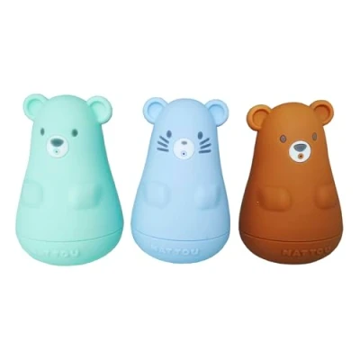 Nattou Silicone Squirting Figures 3 Animal Bath Toys for Bathtub BPA Free Blue/Turquoise/Brown