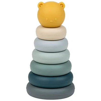 Cute silicone toy tower to stack as a developmental motor activity toy for babies and toddlers, Nice gift idea for a birthday Toy consisting of 6 donut rings that are matched in size and can be plugged into each other as well as 1 cute bear face as a tower top Toy to promote hand-eye coordination, Space-saving as stackable and stowable inside each other Brand quality: reliable BPA-free silicone, Easy to clean: Surface washable with soap and water Contents: 1x Nattou Stacking Tower Toy, 7 pieces incl. 6x ring, 1x bear head, Collection: Silicone, Material: BPA-free silicone, Dimensions: 8 x 8 x 15.5 cm, Colour: Green/Blue/Yellow, 876841